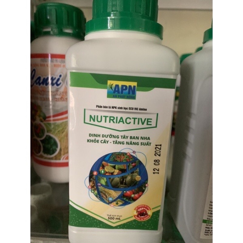 nhãn hiệu NUTRIACTIVE chai 500ml hàng chính hãng cty APN giúp cây trồng vượt qua điều kiện khó khăn, hấp thụ tốt chất dinh dưỡng,... HDSD có trong hìnhthông tin về sản phẩm có thê xem trên bao bì hoặc liên hệ 0368834265