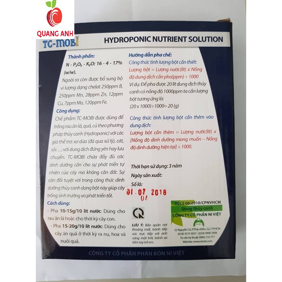 Giới thiệu DINH DƯỠNG THỦY CANH DẠNG BỘT TC-MOBI 500gr