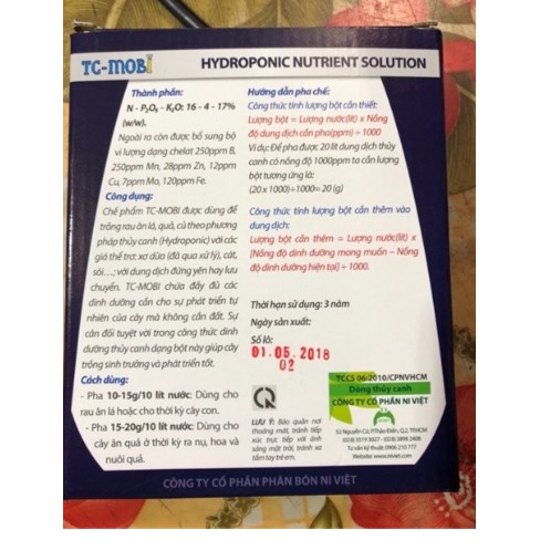 Giới thiệu DINH DƯỠNG THUỶ CANH DẠNG BỘT TC-MOBI