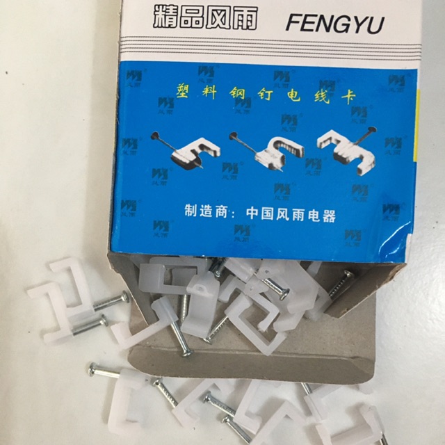 Đinh Ghim Bằng Thép Cứng Không han, đóng được vào các chất liệu từ gỗ, gạch, tường, bê tông...Có mấu nhựa trắng thiết kế vừa 2 dây điện nhỏ 2,5. ghim rất chắc chắn và an toàn, thẩm mỹ Túi Đinh Ghim Dây Liền Nguồn - Nẹp Dây Điện Loại Nhỏ F12 (25c/ hộp) Túi Đinh Ghim Dây Liền Nguồn - Nẹp Dây Điện Loại Nhỏ F12 (25c/hộp)Đinh Ghim Bằng Thép Cứng Không han, đóng được vào các chất liệu từ gỗ, gạch, tường, bê tông...