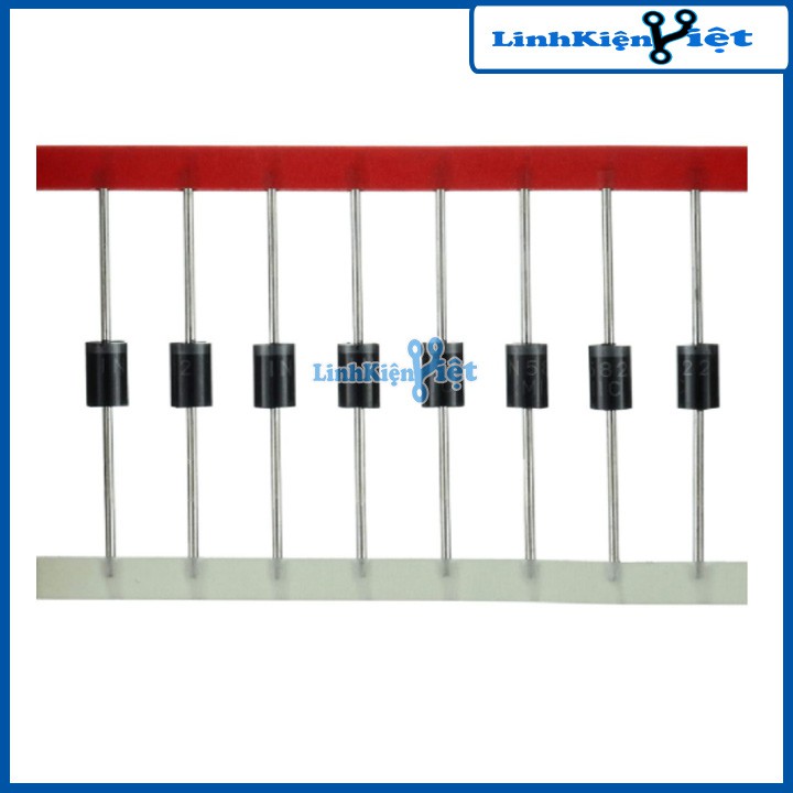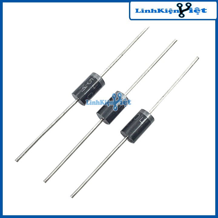 Diode 1N5822 3A 40V SchottkyDiode 1N5822 3A 40V Schottky là một loại diode bán dẫn với một điện áp rơi phân cực thuận thấp và ngắt rất nhanh. Khi phân cực thuận thì trên diode bán dẫn có điện áp rơi, như diode bằng silic là 0.6-0.7V. Trong khi điện áp rơi thuận cửa Schottky là 0.15-0.45V. Điện áp rơi thấp cho phép tốc độ chuyển mạch cao hơn và tổn hao năng lượng thấp hơn.