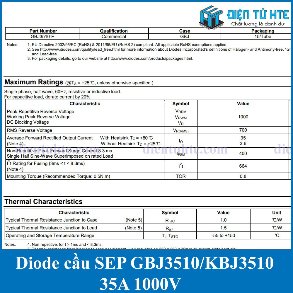 Giới thiệu Diode chỉnh lưu cầu GBJ3510 KBJ3510 35A 1000V chính hãng SEP [HTE Quy Nhơn CN2]