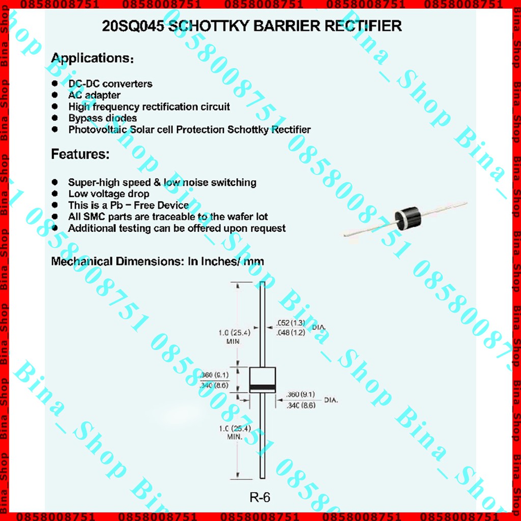 Điốt - Diode chỉnh lưu Schottky 20SQ045 45V 20AChất liệu : nhựa, kim loại