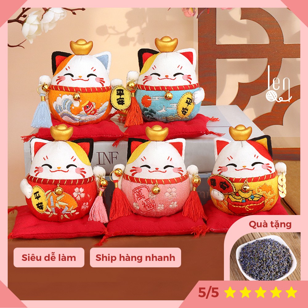 DIY BỘ KIT TỰ THÊU MÈO THẦN TÀI VẪY TAY MAY MẮN QUÀ TẶNG Ý NGHĨA DECOR TRANG TRÍ TREO Ô TÔ ĐẦY ĐỦ NGUYÊN LIỆU KHUNG VẢI