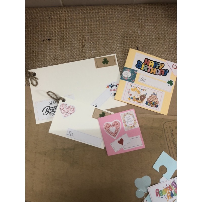 Văn Phòng Phẩm > Sổ & Giấy Các Loại > Giấy In || DIY Combo 20món tự làm 4 thiệp handmade,12 món làm hộp quà kraft kèm sticker phụ kiện trang tríCòn hàng