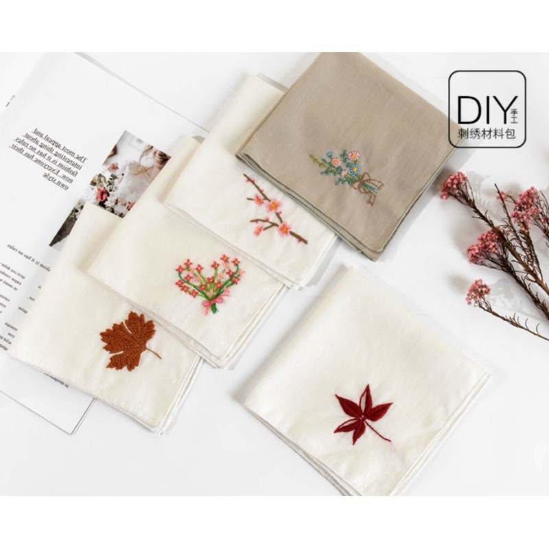 DIY Gói nguyên liệu thêu khăn tay cổ phong Vintage quà tặng tự làm lenmade