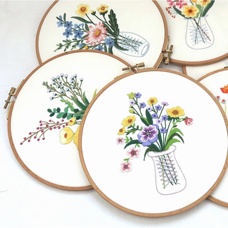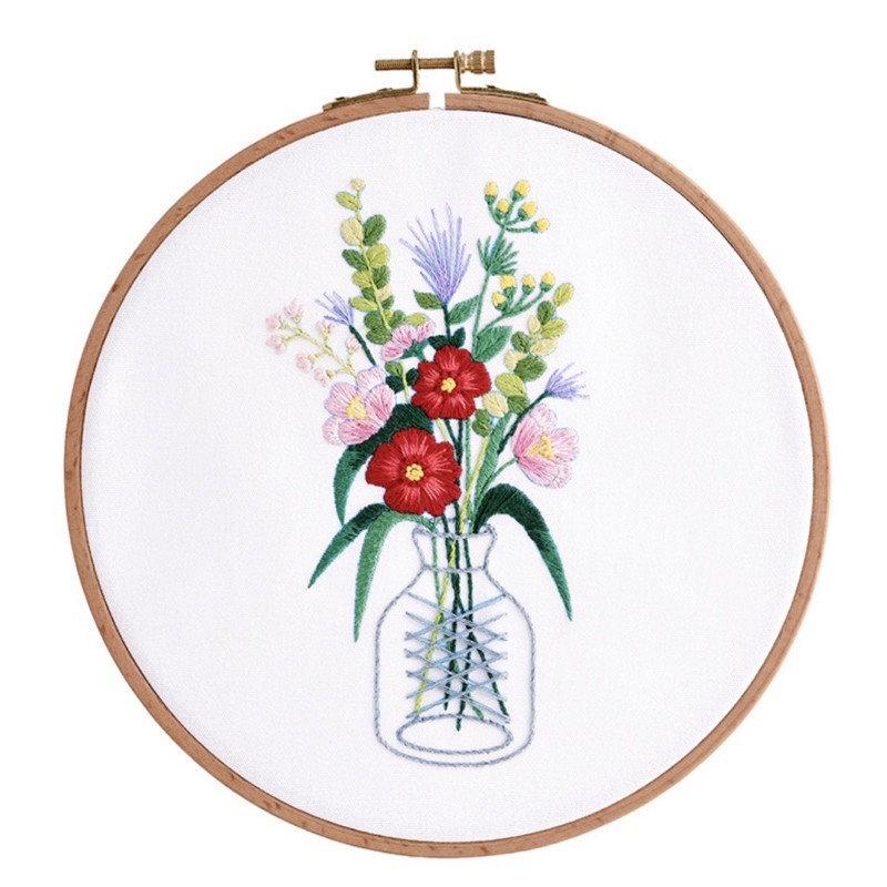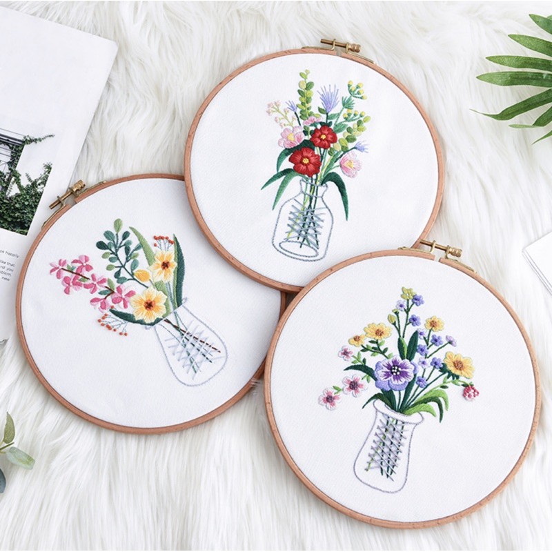 DiY gói nguyên liệu thêu lọ hoa xinh xắn( không có khung thêu)