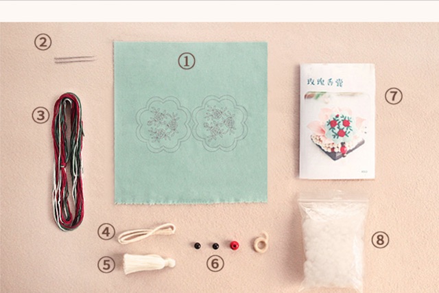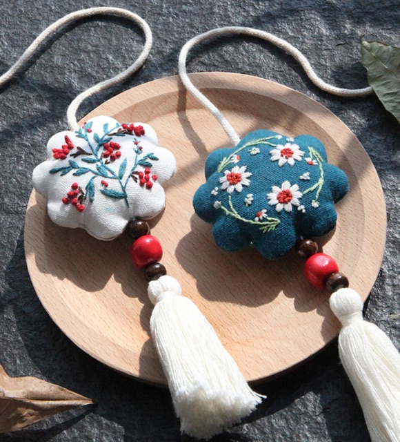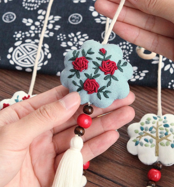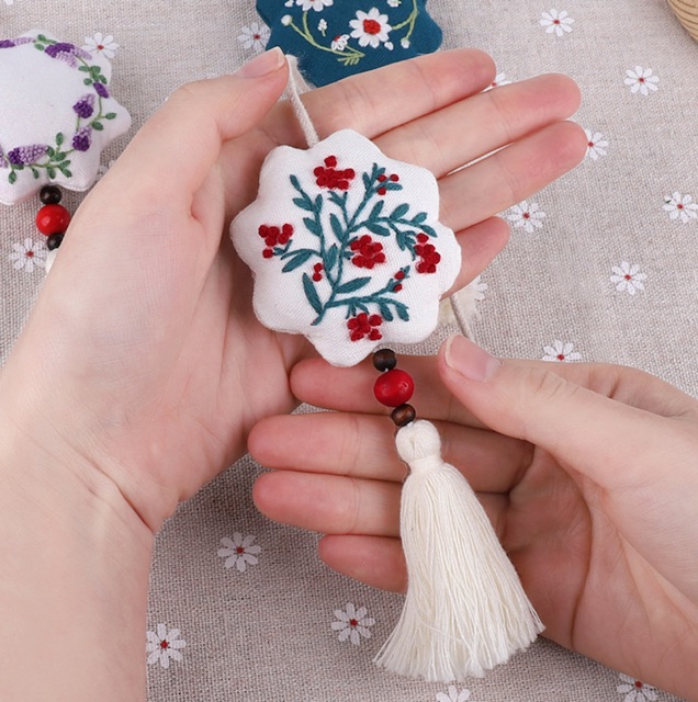 Sở thích & Sưu tầm > Dụng Cụ May Vá || DIY Gói nguyên liệu thêu tay túi thơm may mắn bộ kit đầy đủ hoa cỏ quà tặng ý nghĩa tự làm lenmadeCòn hàng
