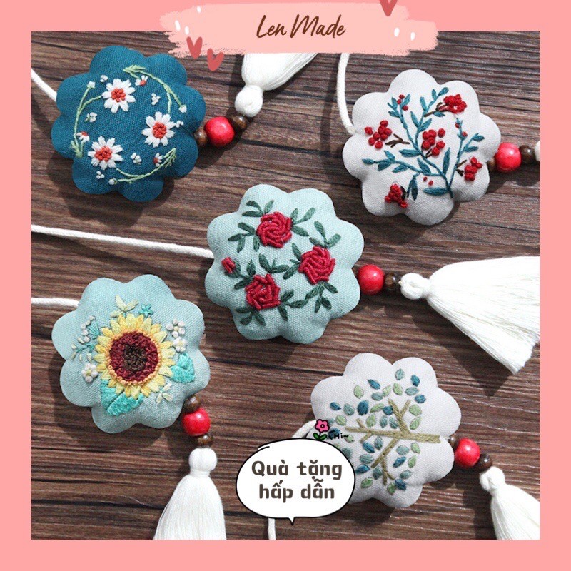 DIY Gói nguyên liệu thêu tay túi thơm may mắn bộ kit đầy đủ hoa cỏ quà tặng ý nghĩa tự làm lenmade