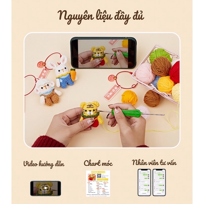 DIY gói nguyên liệu tự làm móc khoá len thú chibi nhồi bông thỏ gấu amigurumi đáng yêu quà tặng handmade đan móc lenmade