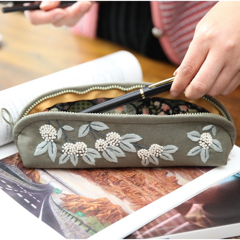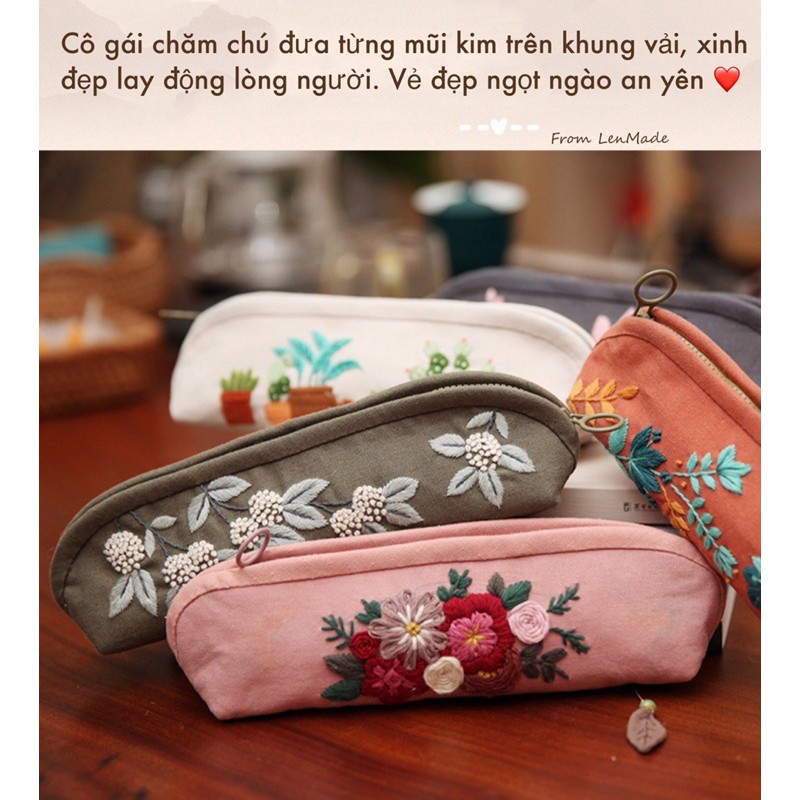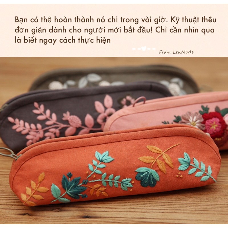 DIY Gói nguyên liệu tự may thêu hộp đựng bút hoa vintage túi ví đồ dùng học tập đầy đủ phụ kiện handmade xinh lenmade