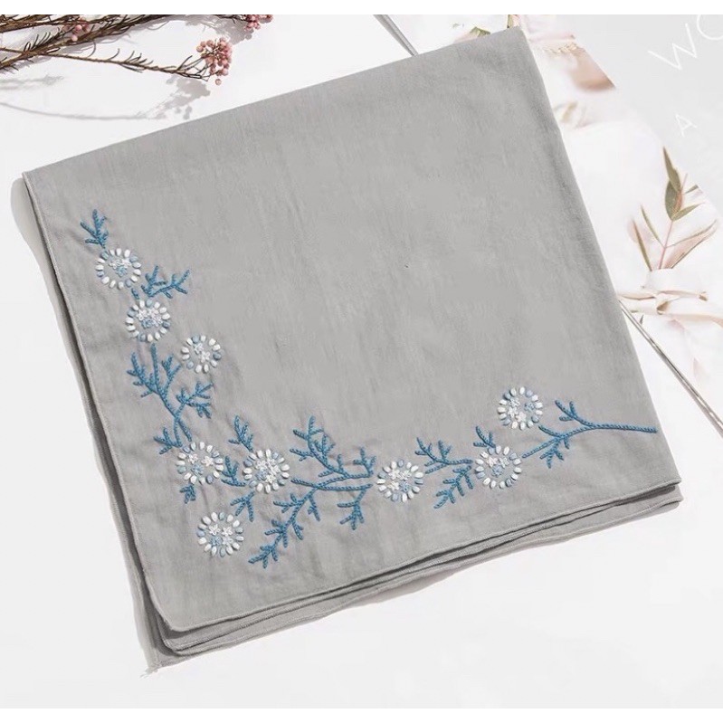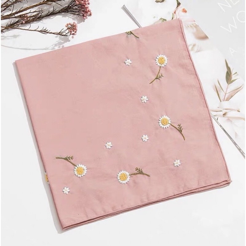 DIY gói nguyên liệu tự thêu khăn tay hoa nhí bộ kit đầy đủ quà tặng ý nghĩa lenmade