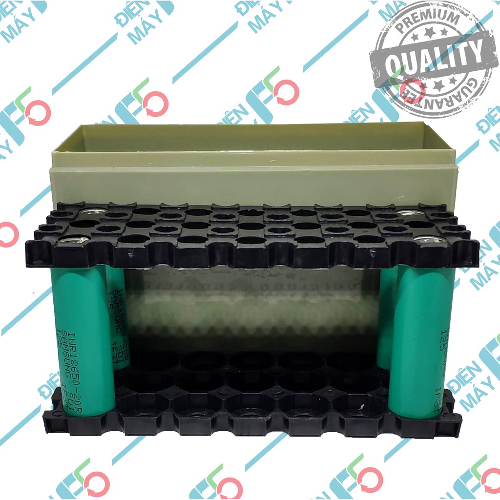- Hộp chứa vừa 21 cell pin 18650 có sẵn khung ngăn cách cell pin an toàn.