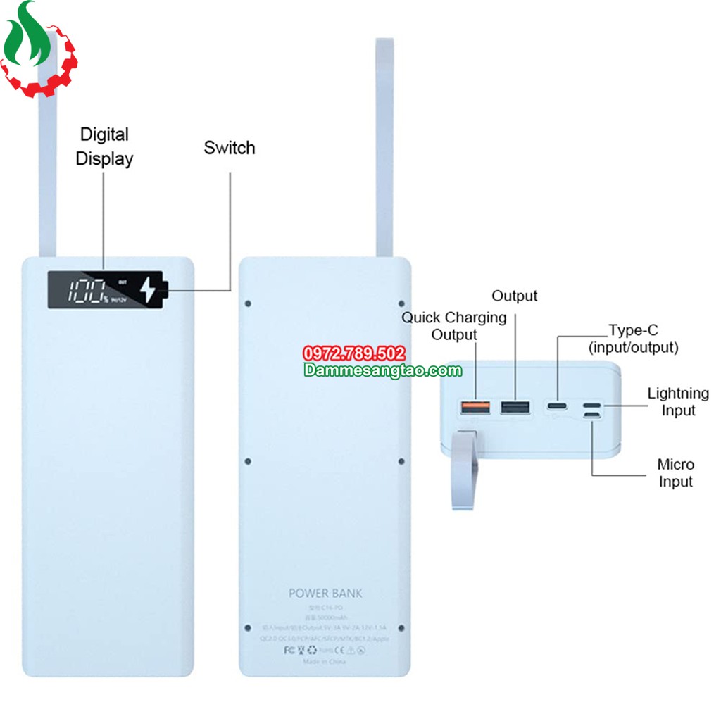 - Dung lượng tối đa 50.000mah