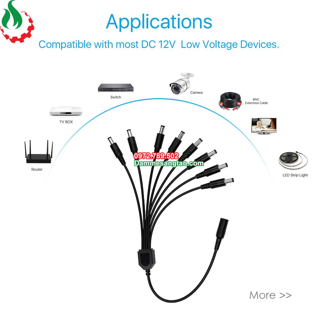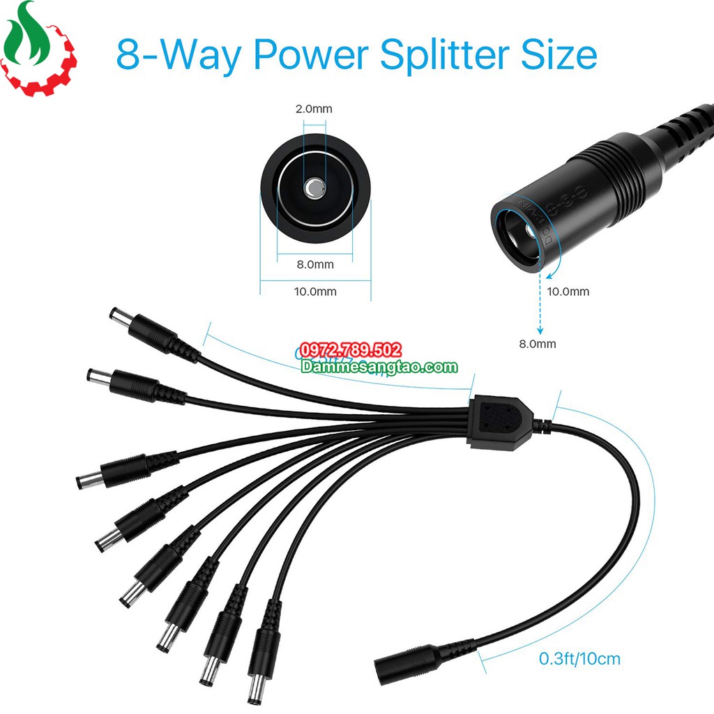 Giới thiệu DMST Dây nguồn DC cái ra nhiều Jack nguồn đực DC (5.5mm x 2.1mm)