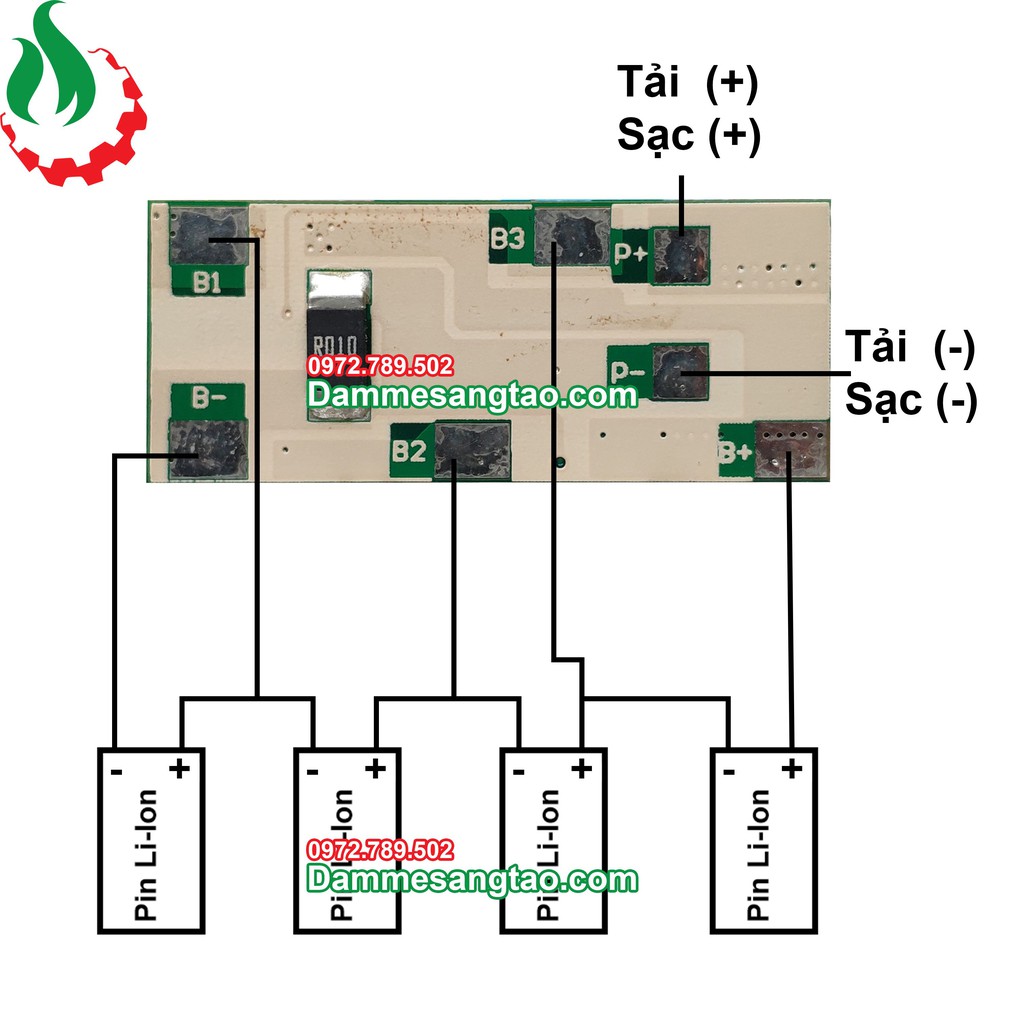 - Chức năng: Sạc và bảo vệ cell Li-ion, dùng trong pin máy khoan, máy bắt vít,... có mức điện thế từ 14.4 - 16.8v. Sử dụng 4 cell Li-ion nối tiếp.