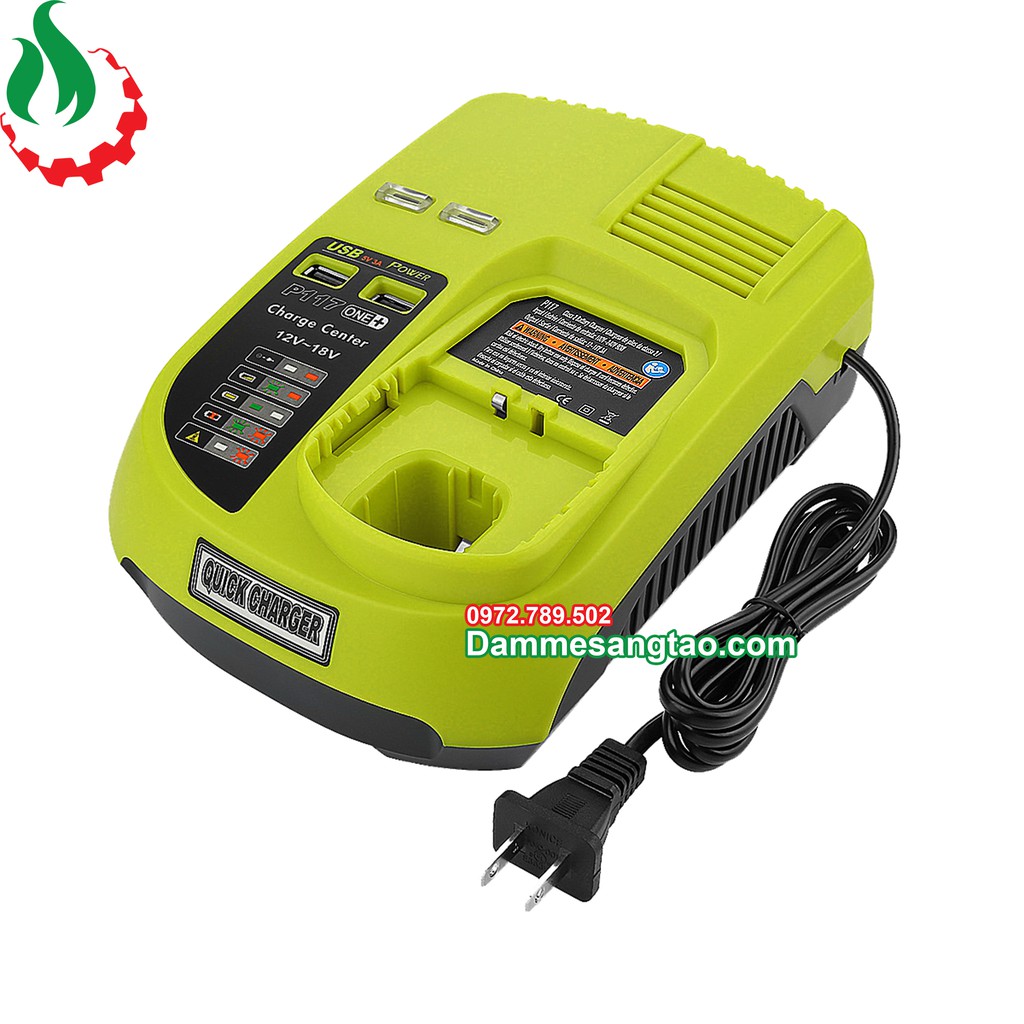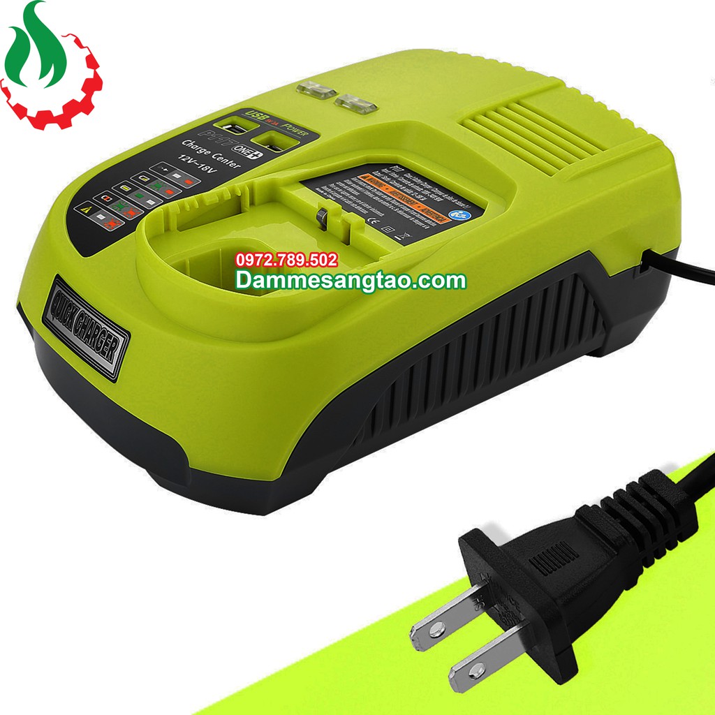 - Sạc được pin Ryobi từ 12V - 14.4V - 18V Li-ion, Ni-Mh/Cd. Khi sạc đèn báo màu đỏ, đầy báo màu xanh.