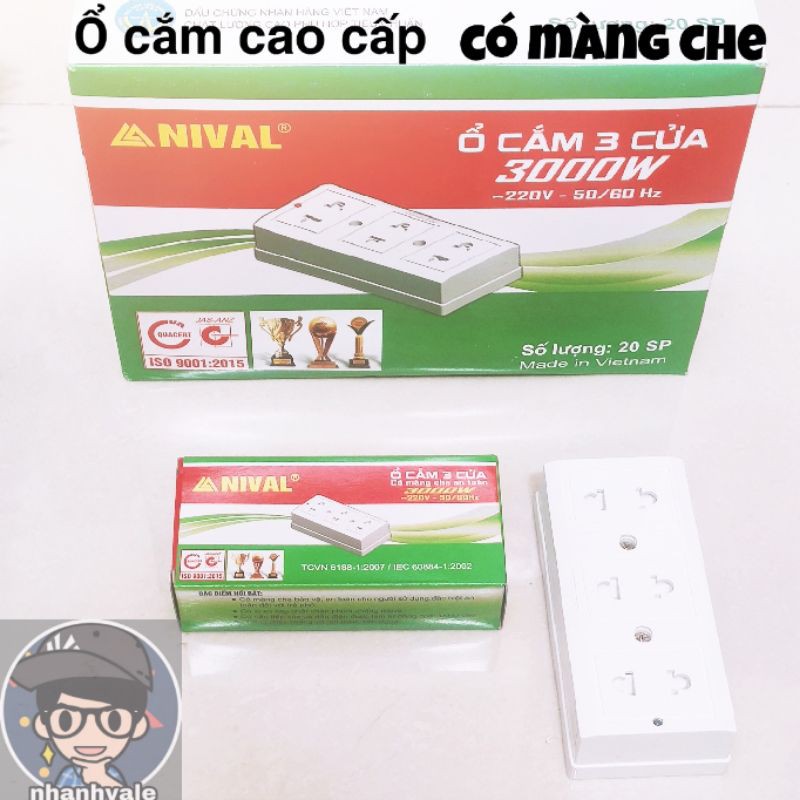 Thiết Bị Điện Gia Dụng > Mạch điện & Phụ tùng > Ổ cắm điện & Dây nối || [DN305] Ổ điện không dây 3 ổ cắm loại tốt Nival Có màng che và lò xo kẹpCòn hàng