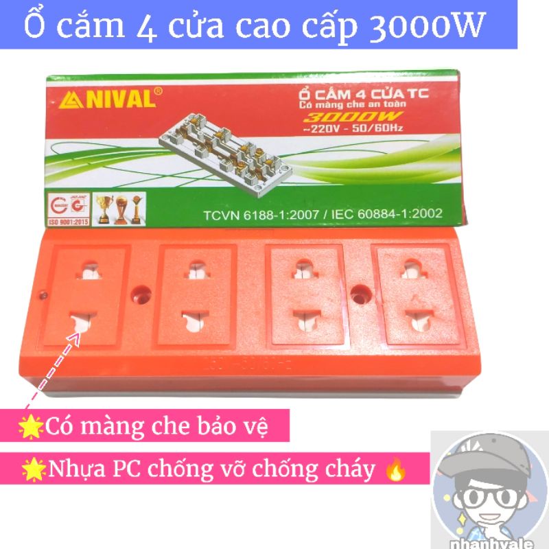 Thiết Bị Điện Gia Dụng > Mạch điện & Phụ tùng > Ổ cắm điện & Dây nối || [DN406] Ổ điện 4 cửa loại tốt Nival Có màng che và lò xo kẹpCòn hàng