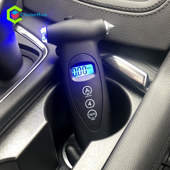 Đo cảm biến áp suất lốp xe ô tô, xe máy đèn led LCD ( Điện tử, Van trong, 4in1: Đo lốp, Xả hơi, Búa phá kính, Dao thép )