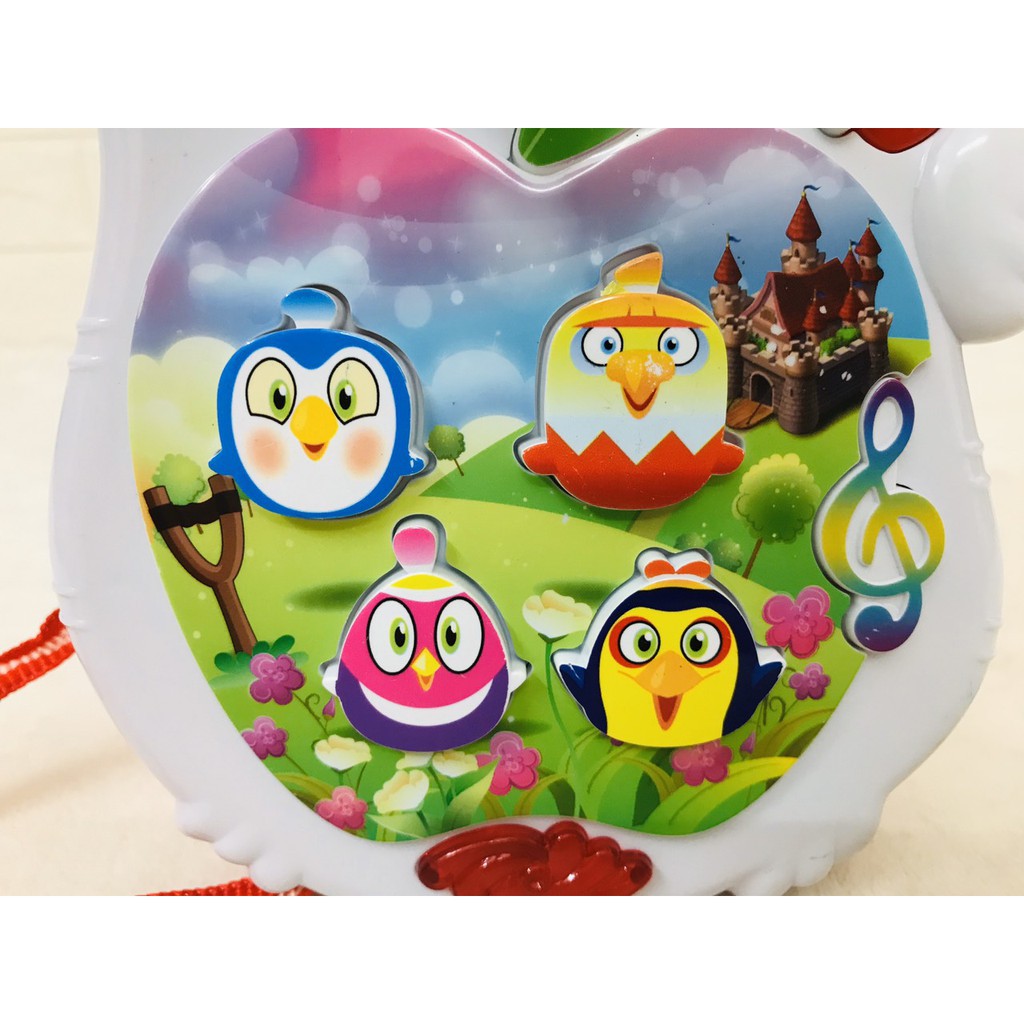 Mỗi nút bấm trên guitar tạo ra một giai điệu khác nhau. Các nút vàng, cam, xanh dương, hồng đậm trên cán đàn là các phím đồ, rê, mi, pha, sol, la, si, đô. Các phím thiết kế hình quả táo rất ngộ nghĩnh, trên thân đàn có thêm các phím chức năng khác phát ra các bài nhạc được cài đặt sẵn, các phím này thiết kế hình các chú chim cực kỳ đáng yêu