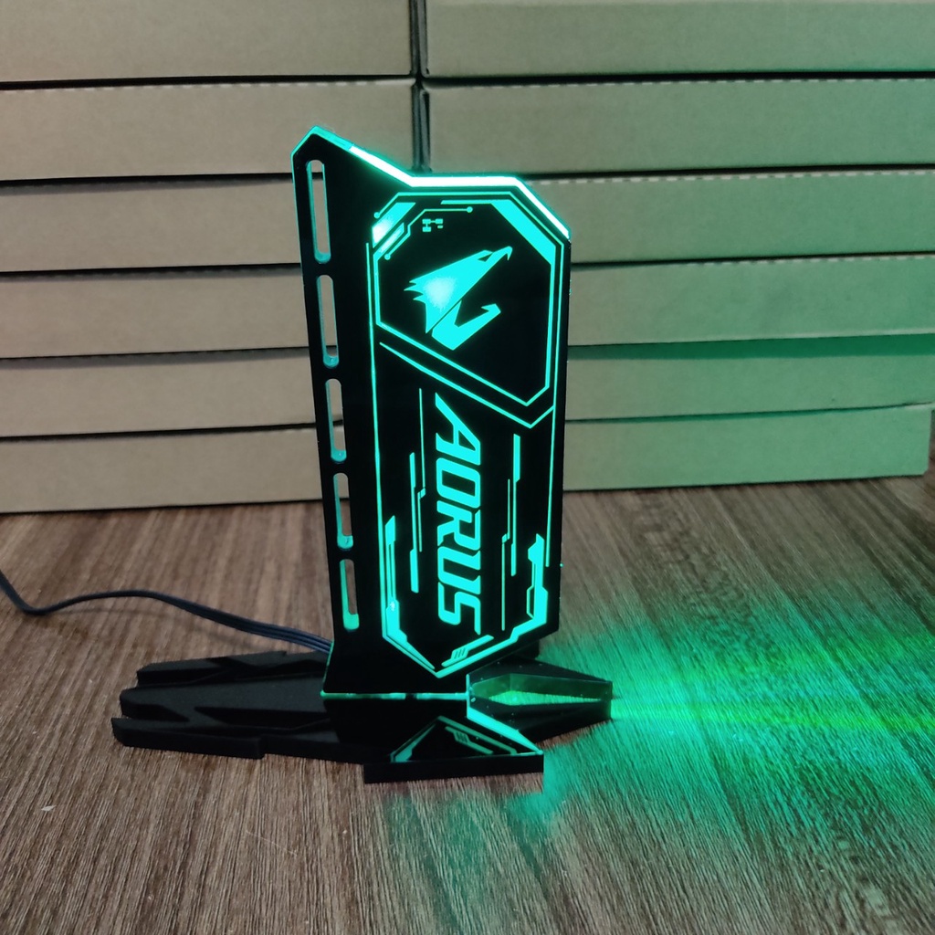 Máy tính & Laptop > Linh Kiện Máy Tính > Khác || Đỡ chống xệ card màn hình VGA hàng handmade logo Aorus, đỡ dạng cột tích hợp Led ARGB đồng bộ Mainboard/ Hub CoolmoonCòn hàng