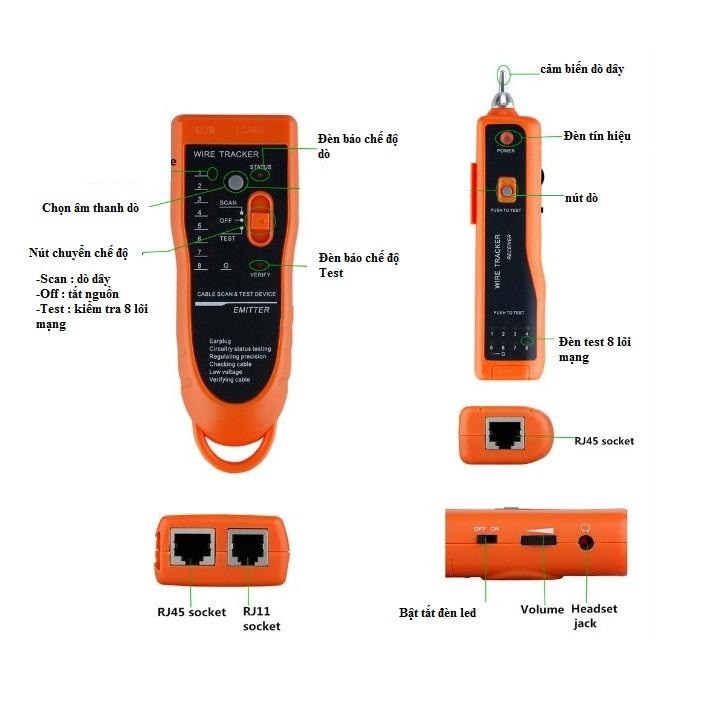 Bộ dò dây mạng RJ45,RJ11 và dây điện thoại đa năng