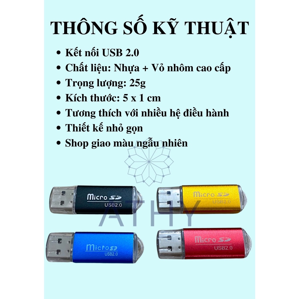 ĐỒ ĐỌC THẺ NHỚ MICRO SD THIẾT KẾ NHÔM cổng USB 2.0 truyền tải dữ liệu lên máy vi tính pc laptop