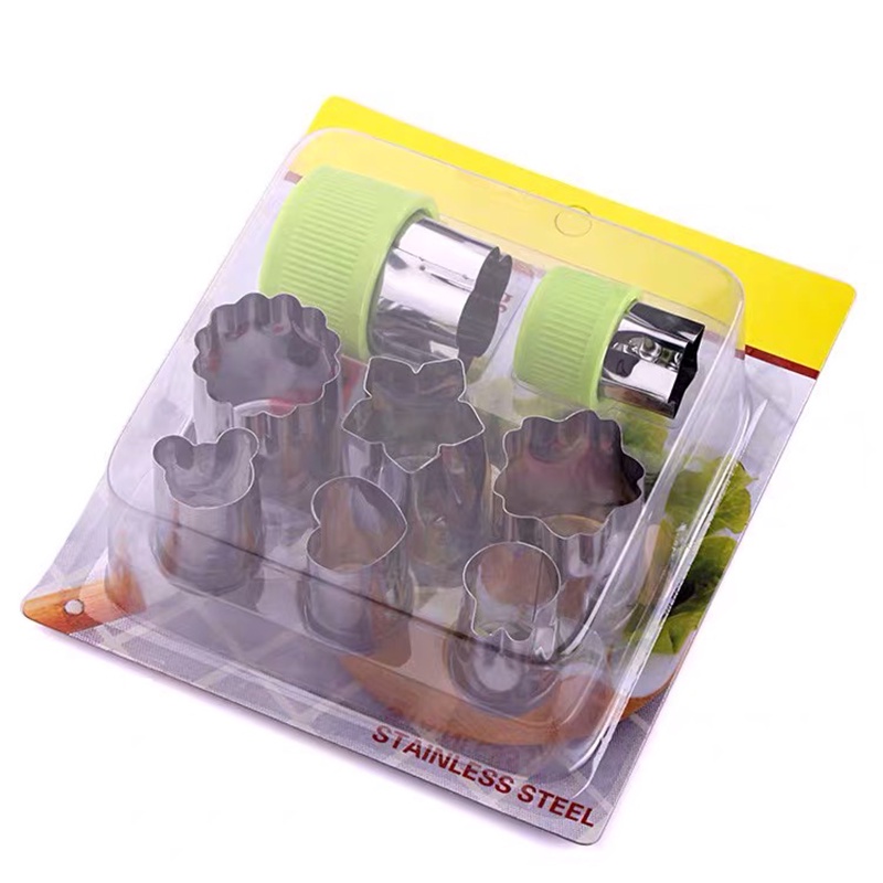 Bộ dao tích hợp từ 8 khuôn mẫu giúp tạo hình cách hoa, ngôi sao, hình tròn xinh xắn, đáng yêu.