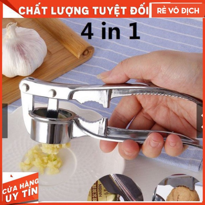 ĐỒ GIA DỤNG Dụng Cụ Đa Năng 4 in1 Dành Cho Nhà Bếp Ép Tỏi - Mở Bia - Ép Quả - Đánh Vẩy Cá Tiện Dụng Inox Không Gỉ