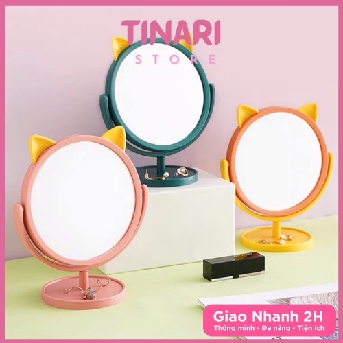 Nhà cửa & Đời sống > Trang trí nhà cửa > Gương || [Đô Gia Dụng] Gương Trang Điểm Để Bàn Xoay 360 Độ TAI MÈOCòn hàng