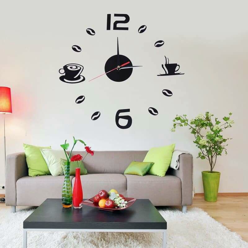 .Đồng hồ dán tường hình tách cafe siêu cute.Thiết kế theo phong cách cổ điển