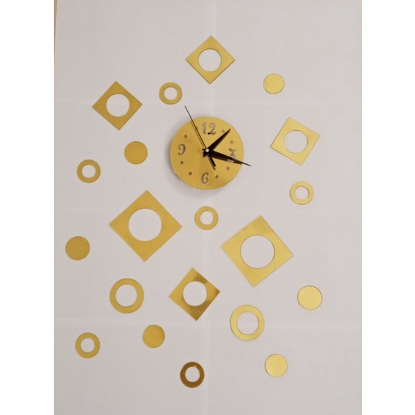 Đồng hồ gương dán tường mẫu kết hợp nhiều hình ô vuông, hình tròn. Bạn cần tự dán đồng hồ nên có thể sắp xếp vị trí các chi tiết theo ý riêng.Ảnh sản phẩm shop chụp chưa bóc lớp phim bảo vệ bề mặt, bạn bóc ra sẽ thấy sáng bóng hơn.