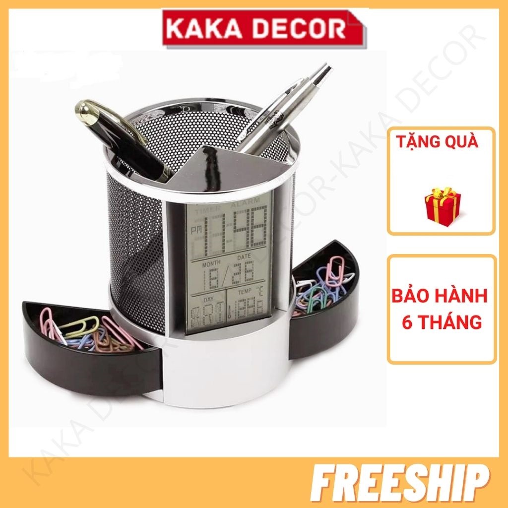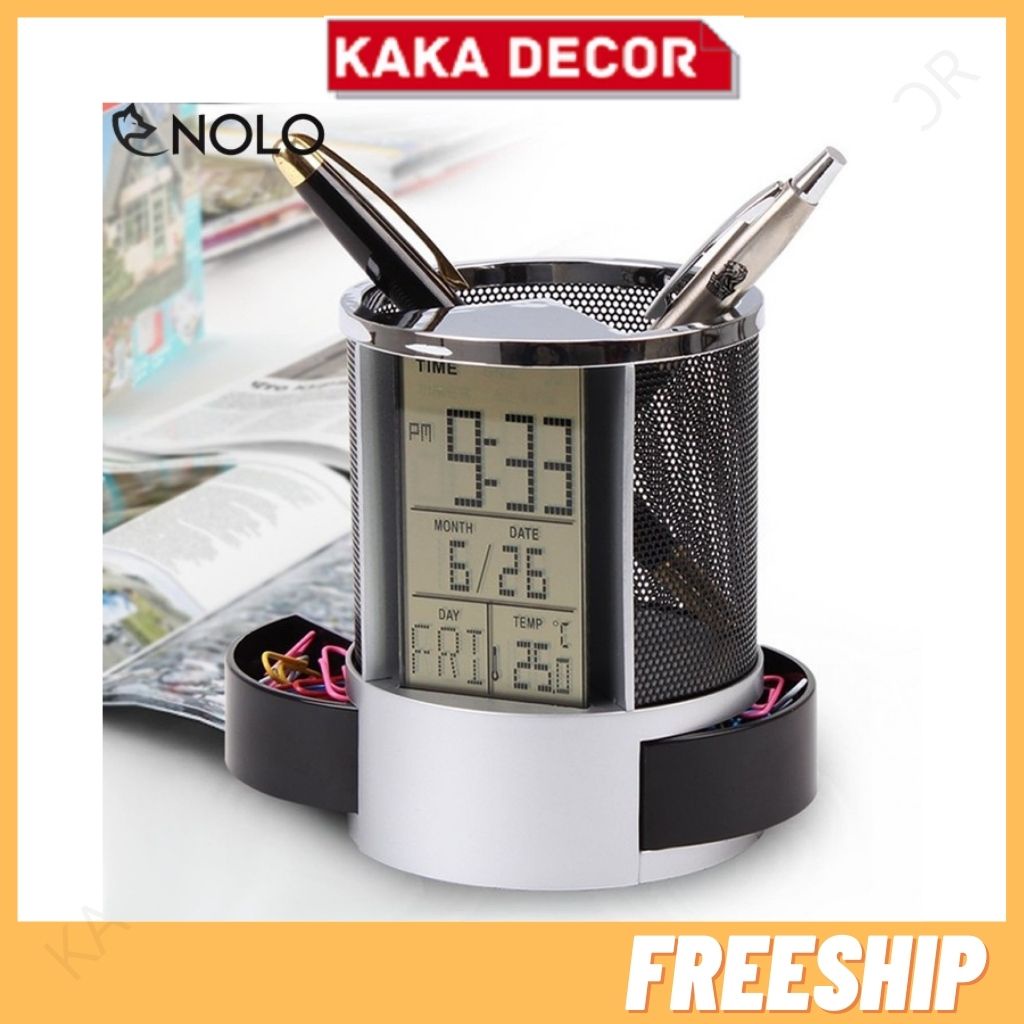 Đồng hồ led để bàn đo nhiệt độ kiêm hộp đựng bút đa năng KaKa Decor