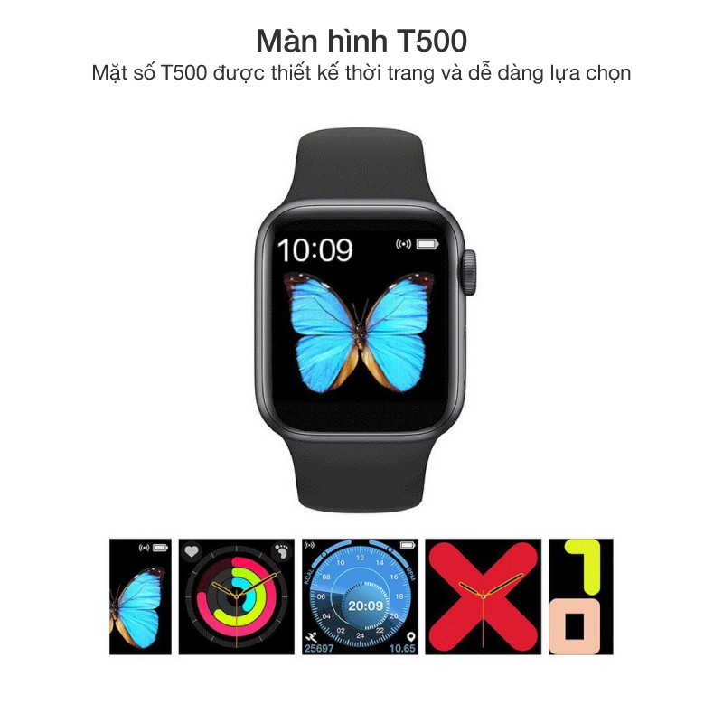 Đồng hồ thông minh T500 Seri 5 thế hệ mới nhất, nghe gọi, đo nhịp tim, thay dây, chống nước IP67