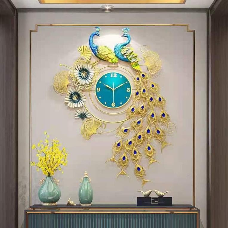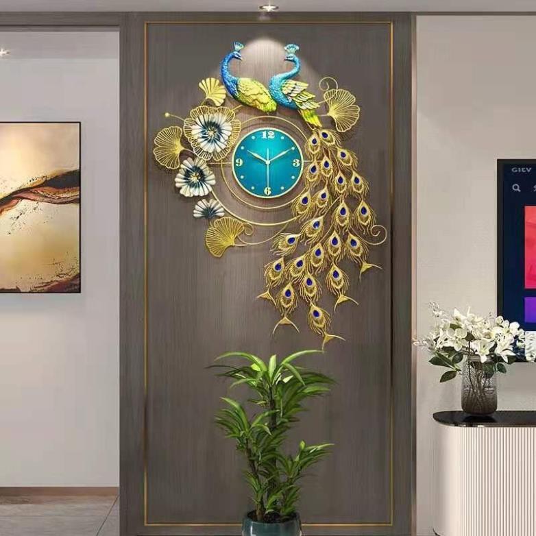 Đồng Hồ Trang Trí Chim công đôi khổng tước hoa nghệ thuật mẫu mới - Kim Trôi - Sơn tĩnh điện 5 lớp