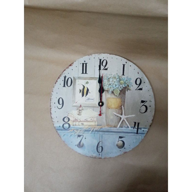 Đồng hồ treo tường mặt chất liệu gỗ khuôn hình tròn.Kích thước: mặt đồng hồ đường kính 34cm.