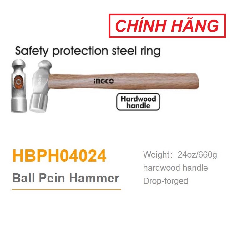 Giới thiệu ĐỒ NGHỀ INGCO Búa đầu tròn 660g HBPH04024 (Cam kết Chính Hãng 100%)