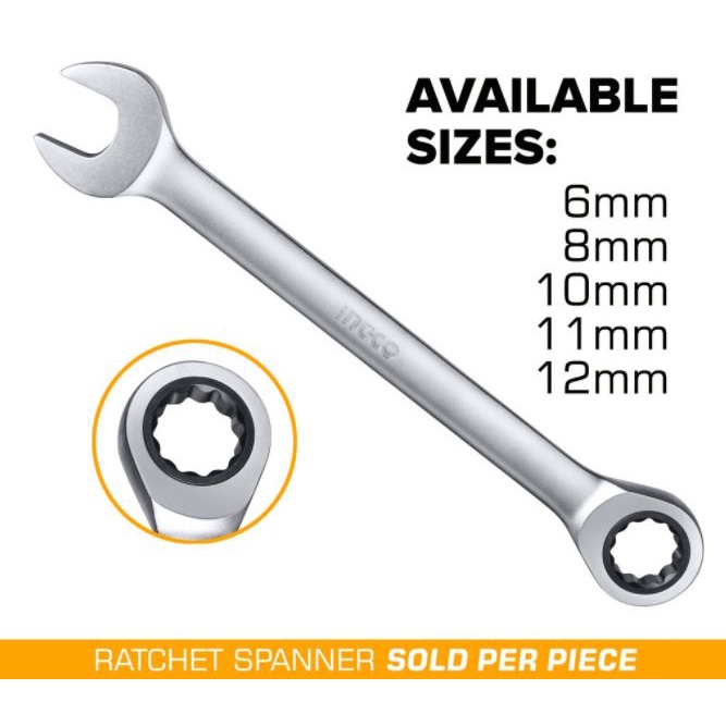 ĐỒ NGHỀ INGCO Cờ lê miệng vòng 2 chiều 6mm - 12mm HCSPAR061 - HCSPAR081 - HCSPAR101 - HCSPAR111 - HCSPAR121 (Chính hãng)