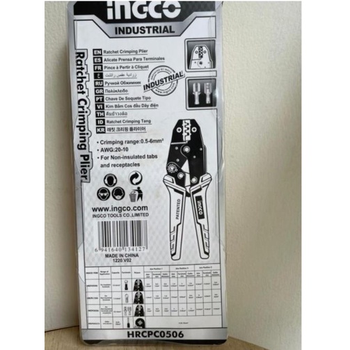 Giới thiệu ĐỒ NGHỀ INGCO Kềm bấm cos dây điện 0.5-6mm2 HRCPC0506 (Cam kết Chính Hãng 100%)