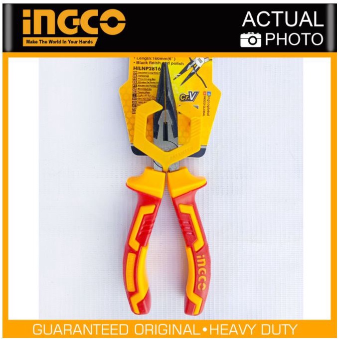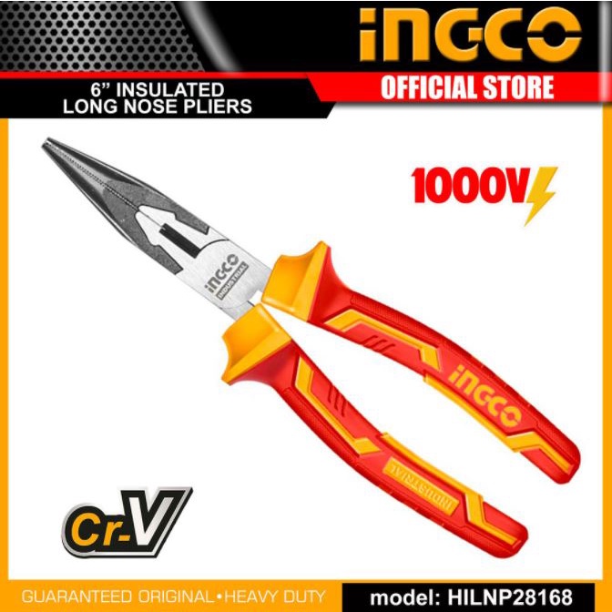 Nhà cửa & Đời sống > Dụng cụ & Thiết bị tiện ích > Dụng cụ > Kìm || ĐỒ NGHỀ INGCO Kềm mũi nhọn cách điện 6"/180mm HILNP28168 (Cam kết Chính Hãng 100%)Còn hàng
