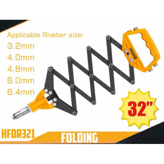 Nhà cửa & Đời sống > Dụng cụ & Thiết bị tiện ích > Dụng cụ > Kìm || ĐỒ NGHỀ INGCO Kềm rút rivet tay gấp (32 ") HFOR321 (Cam kết Chính Hãng 100%)Còn hàng