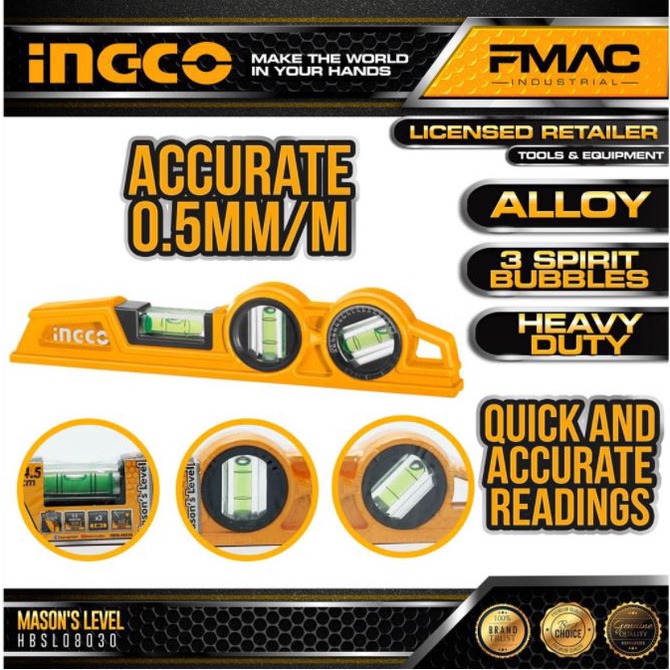Nhà cửa & Đời sống > Dụng cụ & Thiết bị tiện ích > Dụng cụ > Dụng cụ đo lường || ĐỒ NGHỀ INGCO Thước thủy 24.5cm HBSL08030 (Cam kết Chính Hãng 100%)Còn hàng