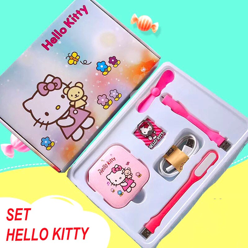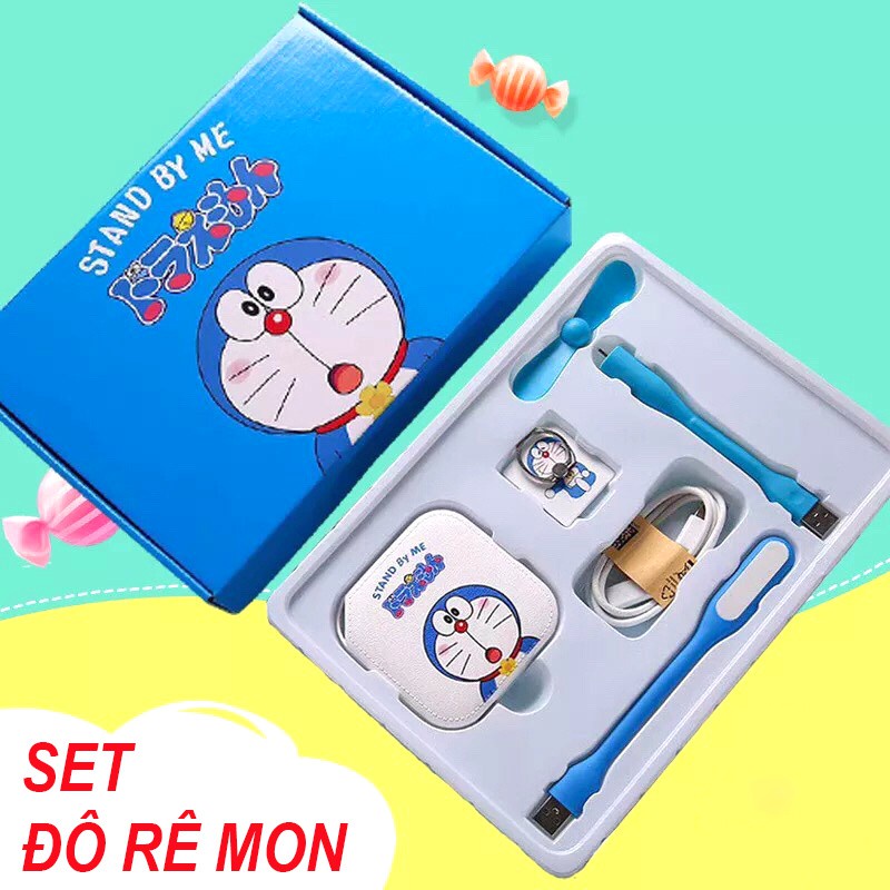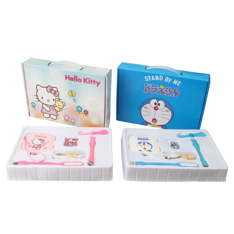 [ĐÔ RÊ MON] BỘ COMBO SẠC DỰ PHÒNG 5 MÓN ĐÁNG YÊU HÌNH DOREMON – HELLO KITTY