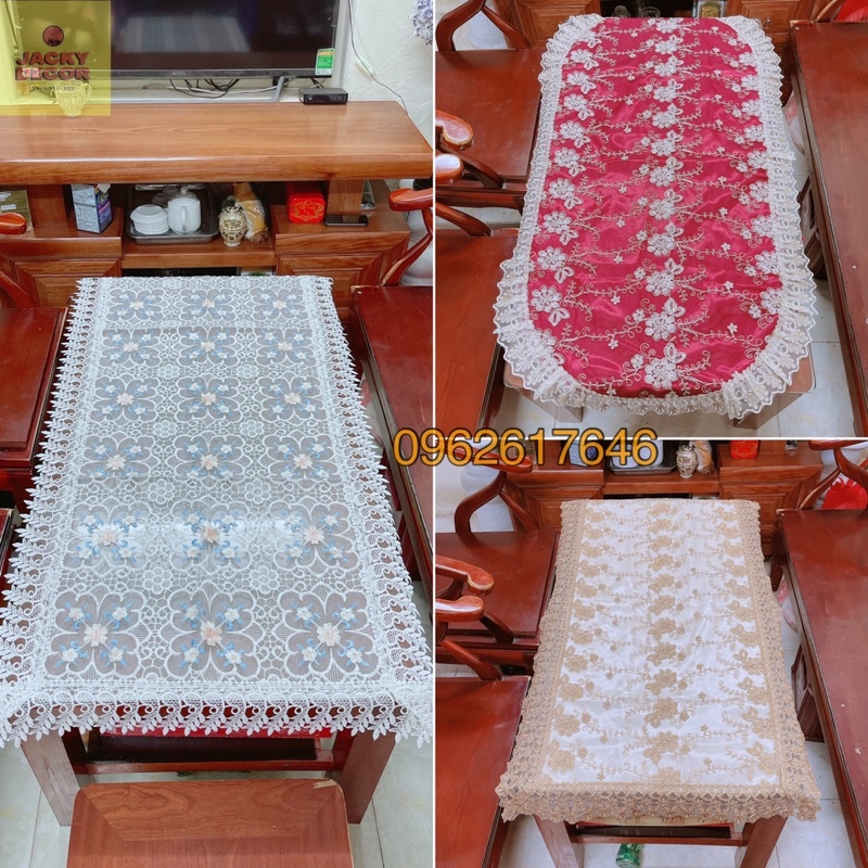 ⭐Khăn trải bàn ren vải móc 50x110cm; 60x120cm phong cách Châu Âu - Hàng đẹp 📣👉Chất liệu: Khăn được sản xuất trên dây chuyền hiện đại theo công nghệ Nhật Bản, chất liệu vải cotton thêu hoa văn trang trí, dày dặn.