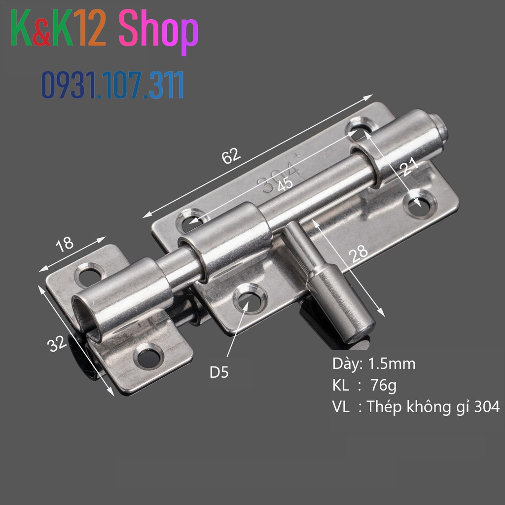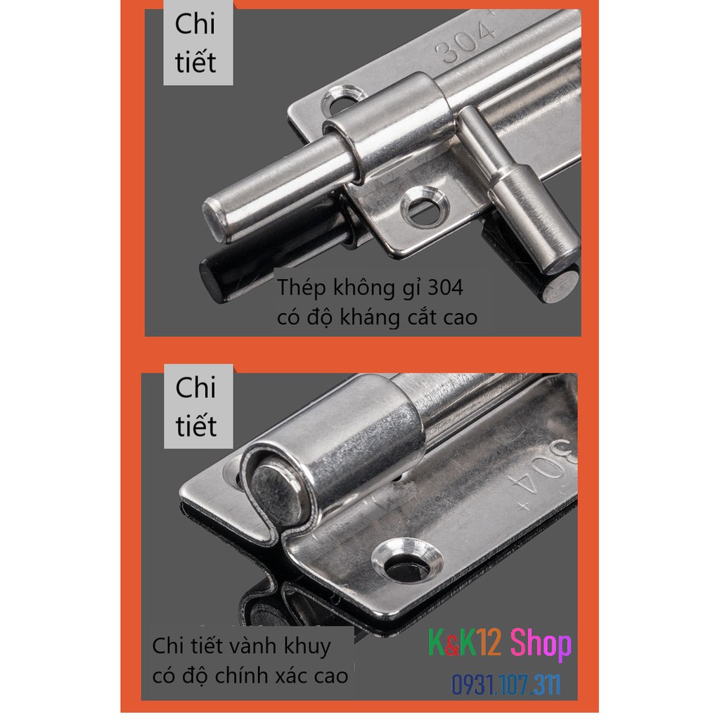 [ Độc quyền chốt khóa] Chốt khóa cửa, then cửa bằng thép không gỉ K06 cao cấp loại 3 inch