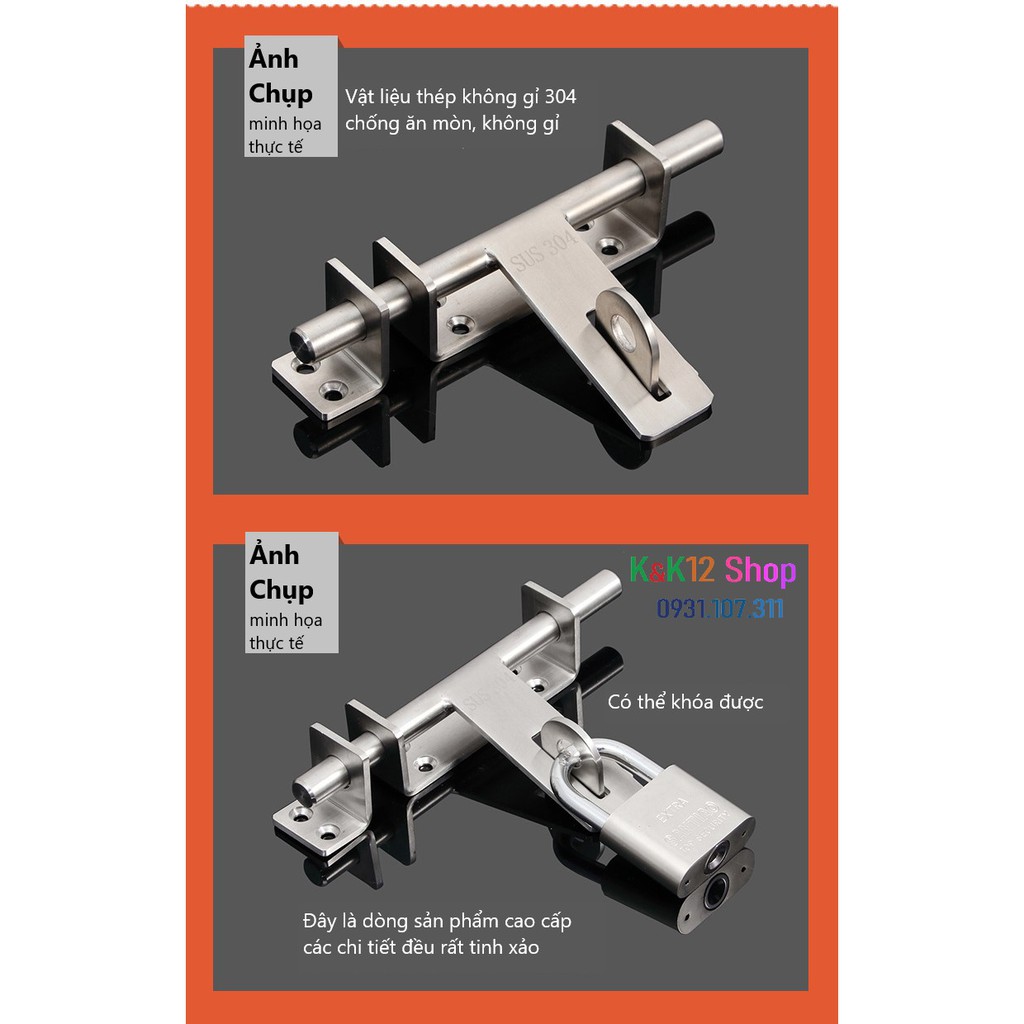 Nhà cửa & Đời sống > Bảo hộ gia đình > Khóa, ổ khóa || [ Độc quyền] Chốt khóa cửa, then cửa bằng thép không gỉ K03 loại lớn cao cấpCòn hàng