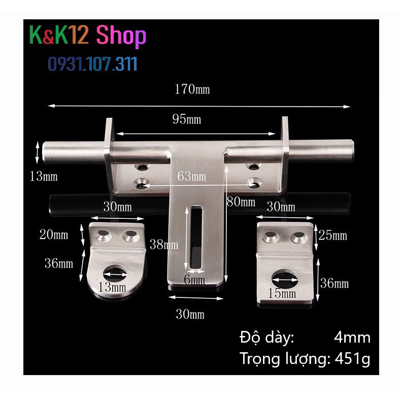 * Chốt khóa cửa, then cửa bằng thép không gỉ K03 loại lớn cao cấp được thiết kế đơn giản, chắc chắn, tiện lợi và sử dụng được trên mọi mọi loại cửa khác nhau. Bảo đảm cho bạn sự an toàn tuyệt đối.
