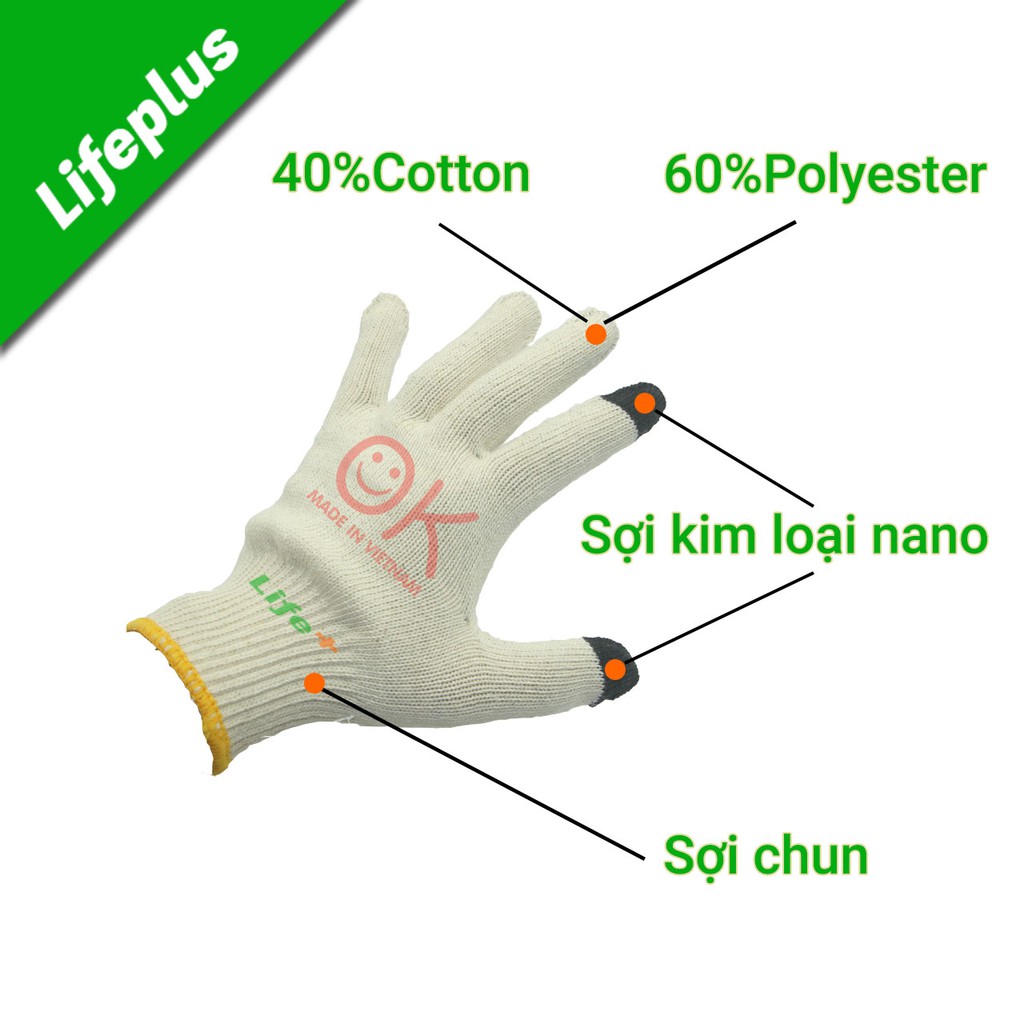 Găng tay tay bảo hộ cảm ứng xuất Nhật loại dày có thành phần chính 40% Cotton – 60% Polyester giúp sản phẩm có độ bền cao, thấm hút tốt, hạn chế tối đa việc bám bụi bẩn, chống nấm mốc.