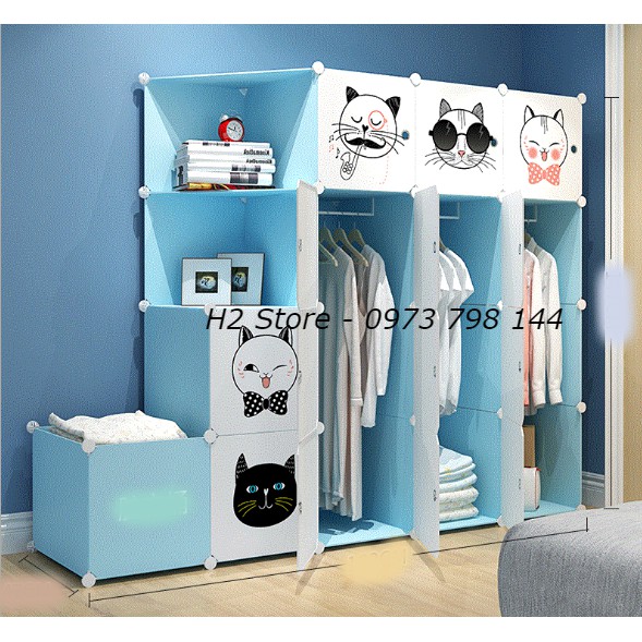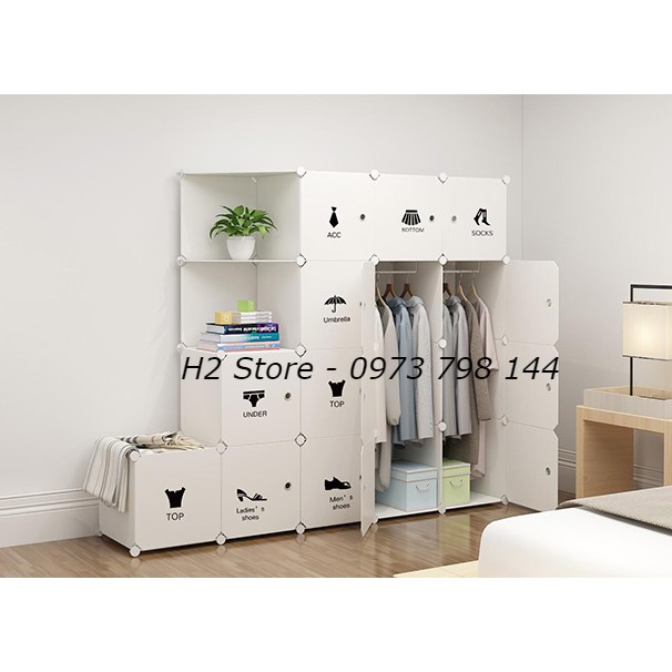 [ĐỘC QUYỀN] TỦ NHỰA LẮP GHÉP 16 Ô (GỒM 2 KỆ) + 1 Ô GÓC ĐỂ TREO ĐỒ ĐA NĂNG THÔNG MINH sâu 47cm